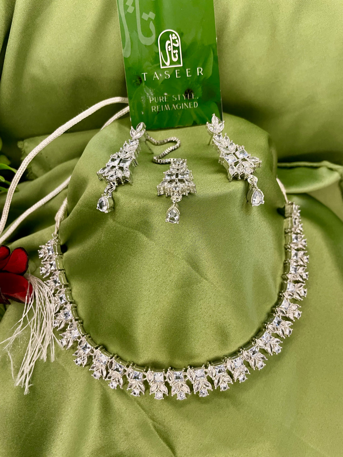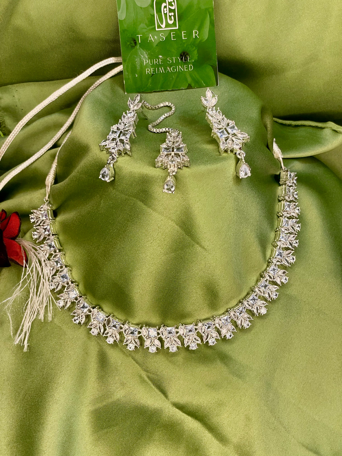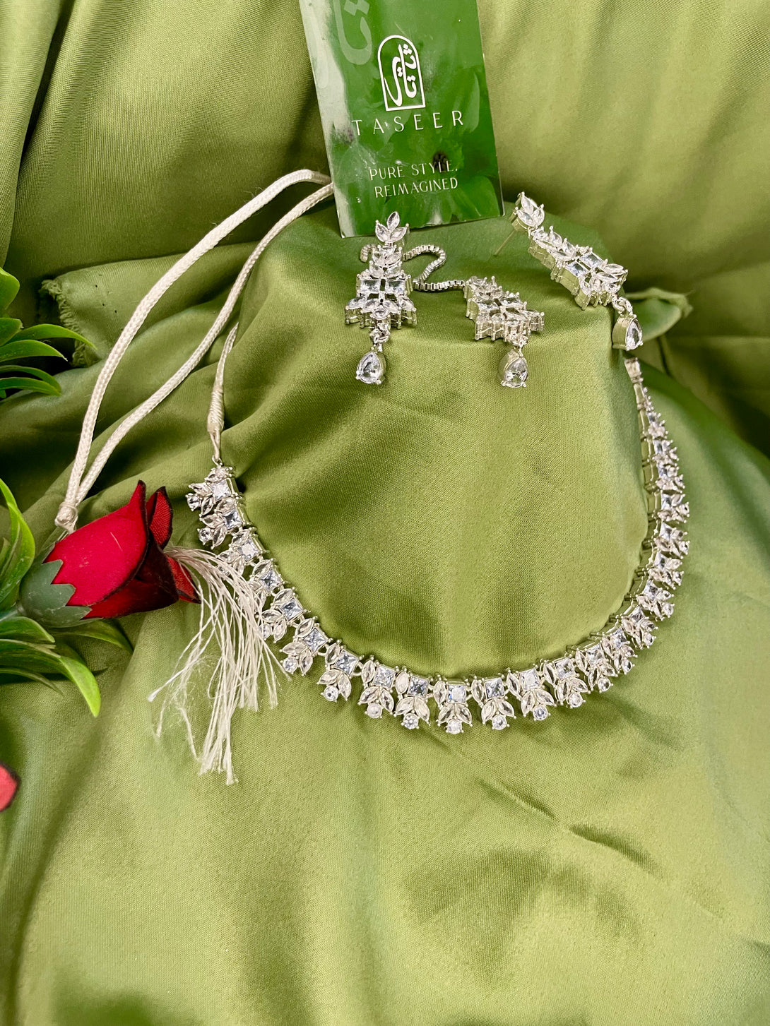 Enhance your elegance with the American Diamond Necklace Set, a stunning collection of high-quality artificial jewelry designed to mimic the beauty and brilliance of real diamonds. Perfect for weddings, festive events, and special occasions, this set offers unmatched style at an affordable price.