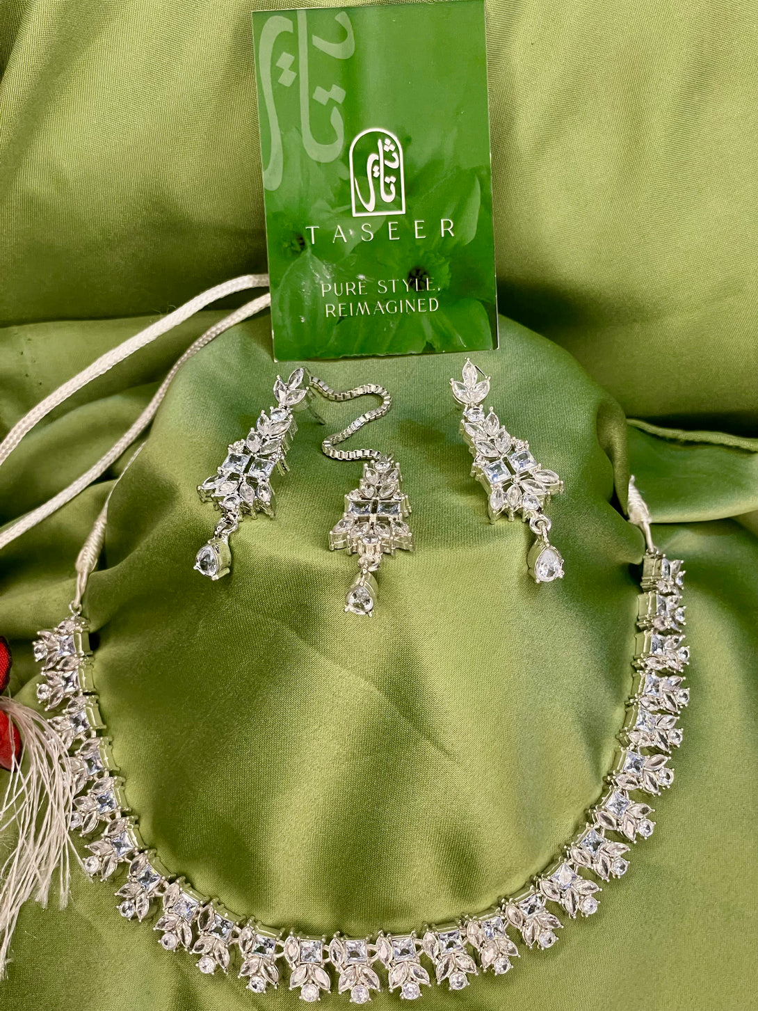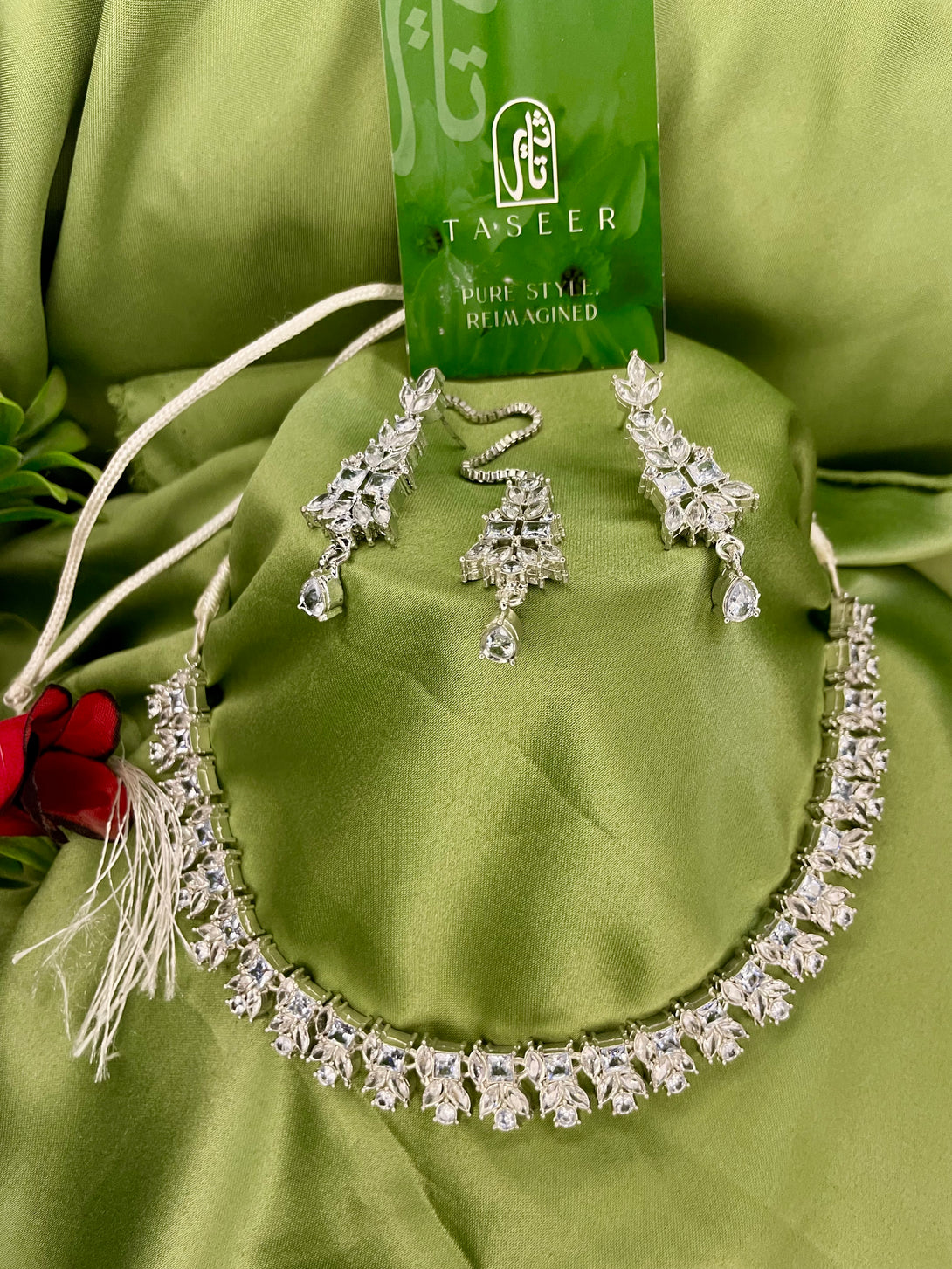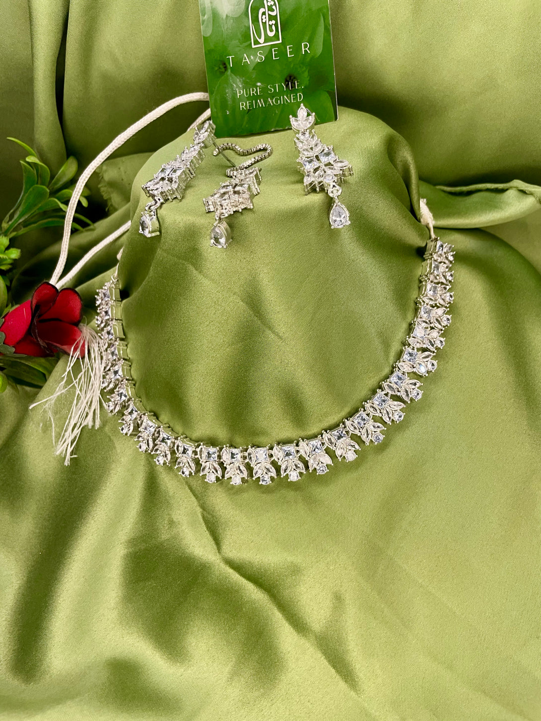 Enhance your elegance with the American Diamond Necklace Set, a stunning collection of high-quality artificial jewelry designed to mimic the beauty and brilliance of real diamonds. Perfect for weddings, festive events, and special occasions, this set offers unmatched style at an affordable price.