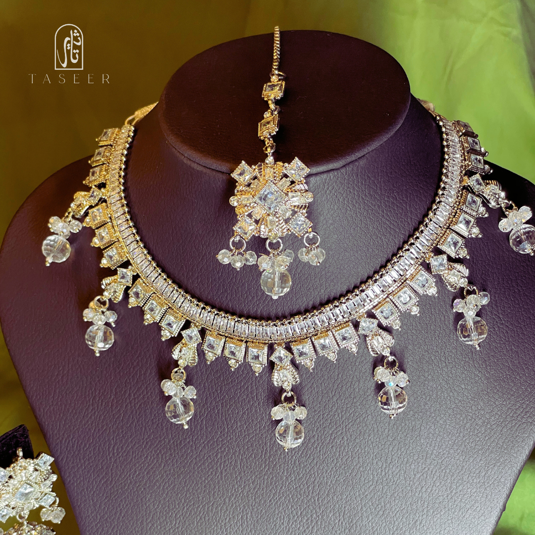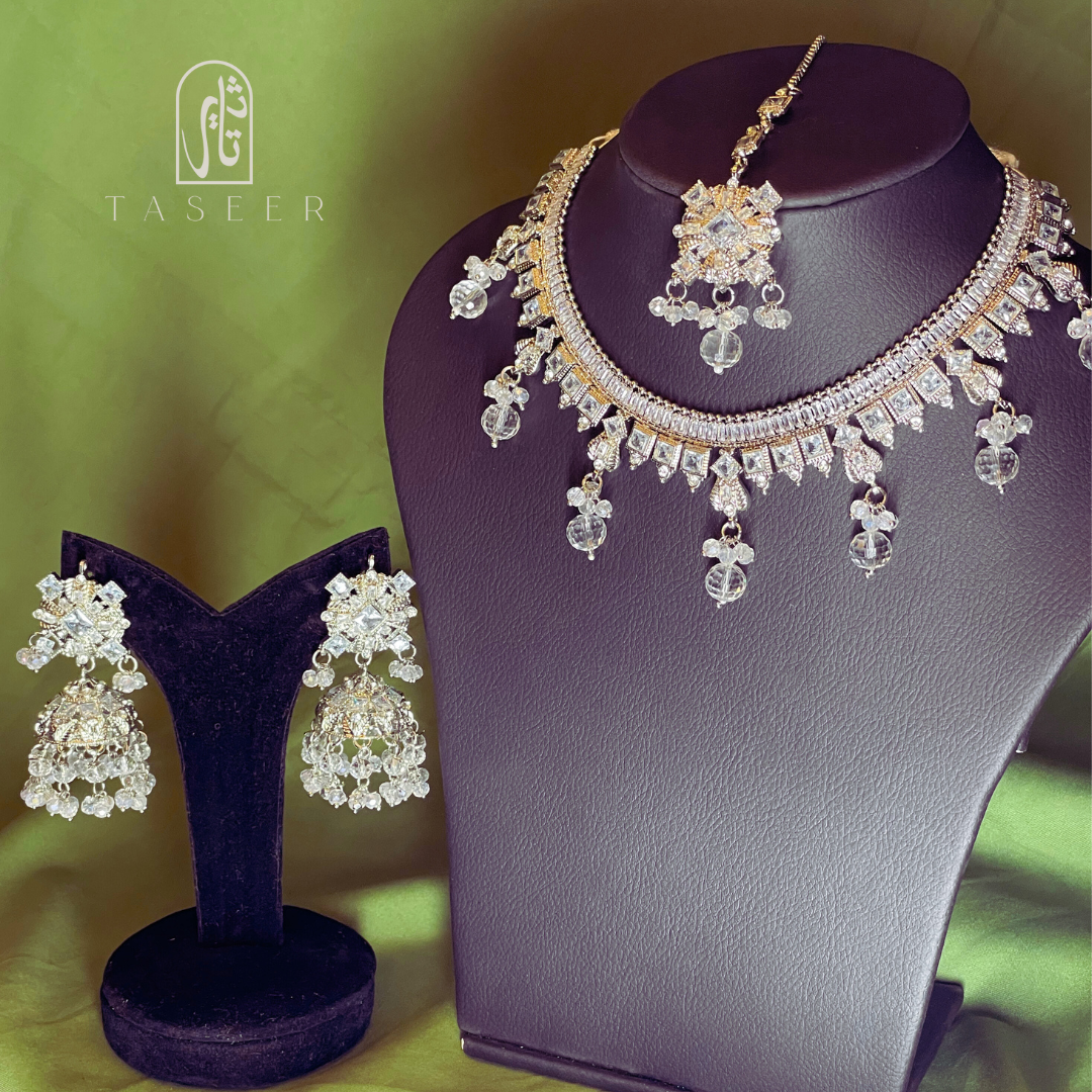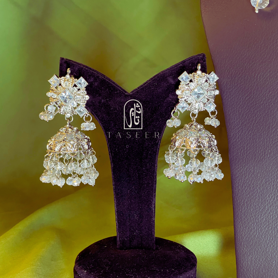 Kundan Necklace Set with Jhumka Earrings Silver